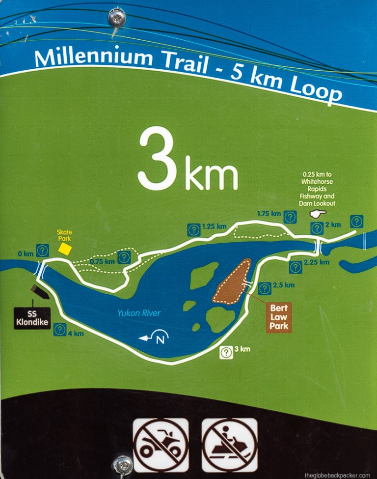 The loop ends with crossing the bridge and you’ll be back at the S.S. Klondike National Historic Site.