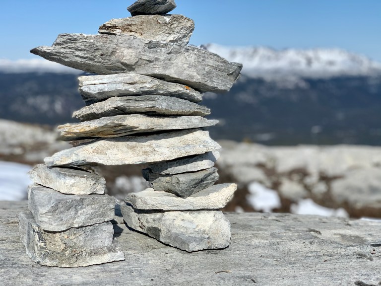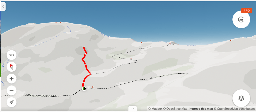 When you reach the trailhead, adjacent to the towers, there is a small trail leading north. You’ll also see a wooden mark ‘Grey Mountain Summit Trail’. If you follow along this trail, you’ll reach the summit in about 2.5 kms. The summit is usually marked with a rock cairn.