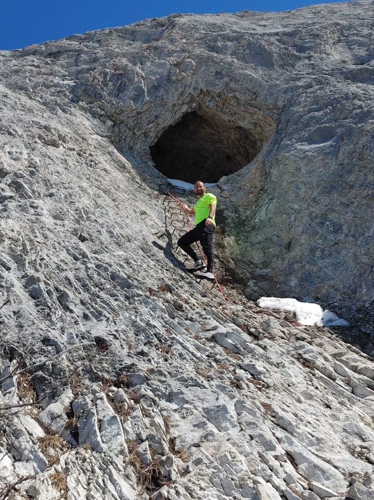 Most of the hike is climbing up the steep slope of the rocky face of the Grey Mountain to the cave. Final few steps to the cave are vertical and there is a ladder and rope to climb into the cave. It is an adventure worth every effort. The views from the cave are simply stunning.