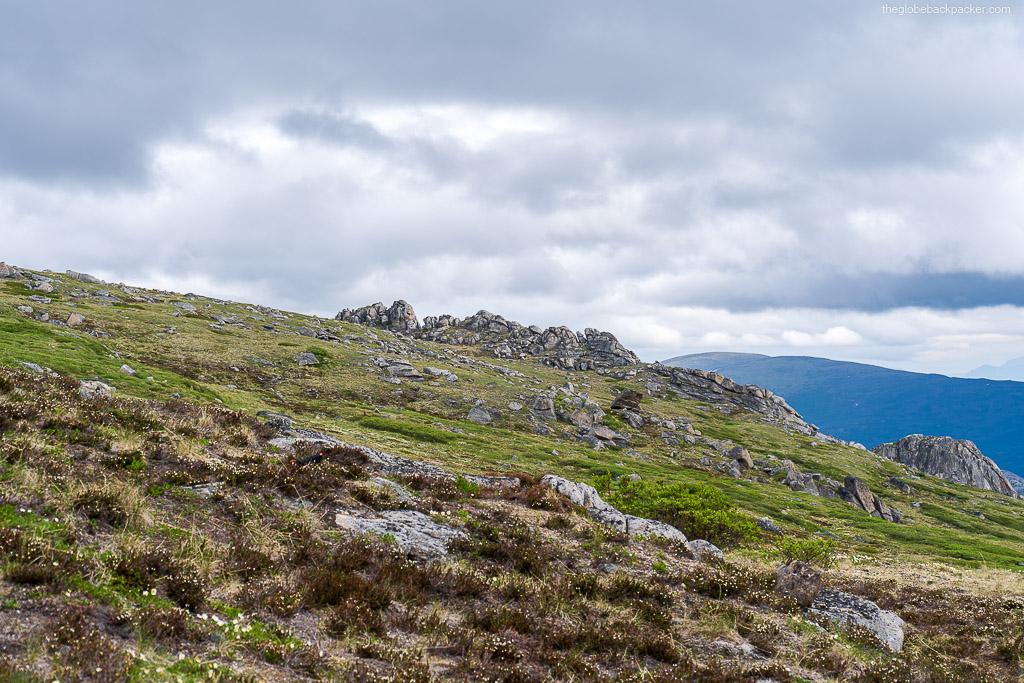 From here, the trail splits and disappears in some spots. All trails eventually lead to the Tors. Near the top of the mountain, it is an open sub alpine terrain. It can get cold here, when the wind is blowing in the East-West direction.