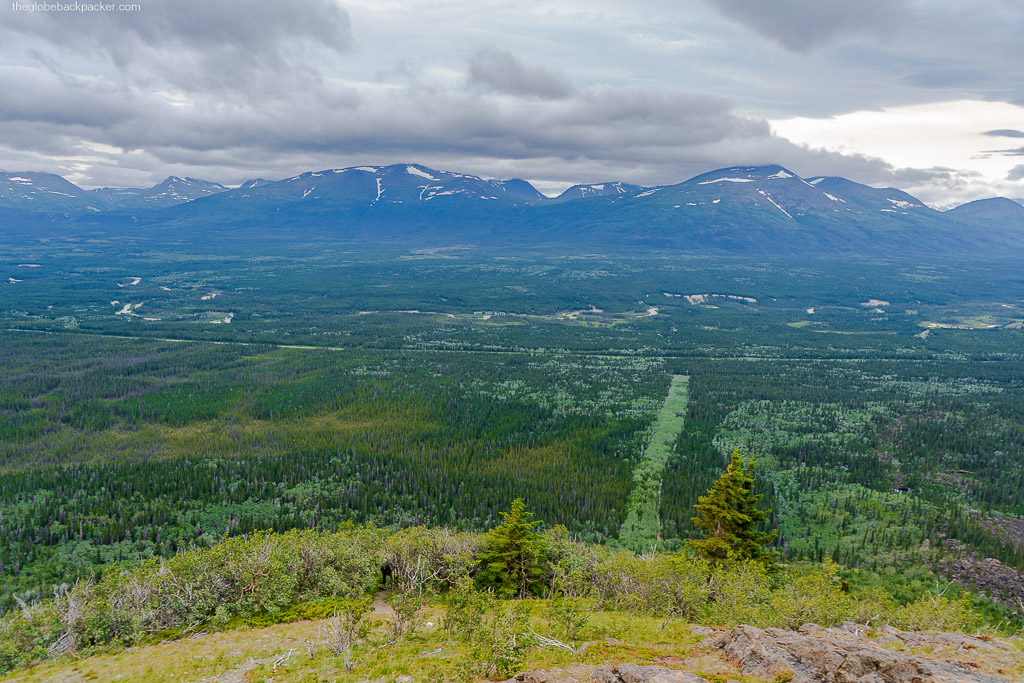 The trail begins near the turnoff right before the Otter Falls Cutoff. During most of the summer (unless it has rained a lot), you should be able to take your AWD/4×4 all the way in, to the actual trailhead on the fire break line. If this part of the road is muddy, you’ll need to park near the Alaska Highway and walk in, which should take about an hour more of walking.