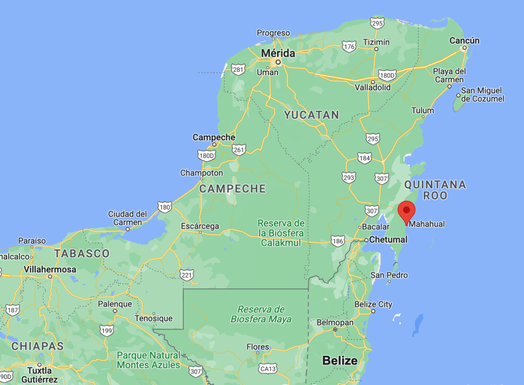 Mahahaul is a very small town located in the southeast corner of Quintana Roo in Mexico. It is about 2.5 hrs drive south of Tulum, close to the border with Belize.